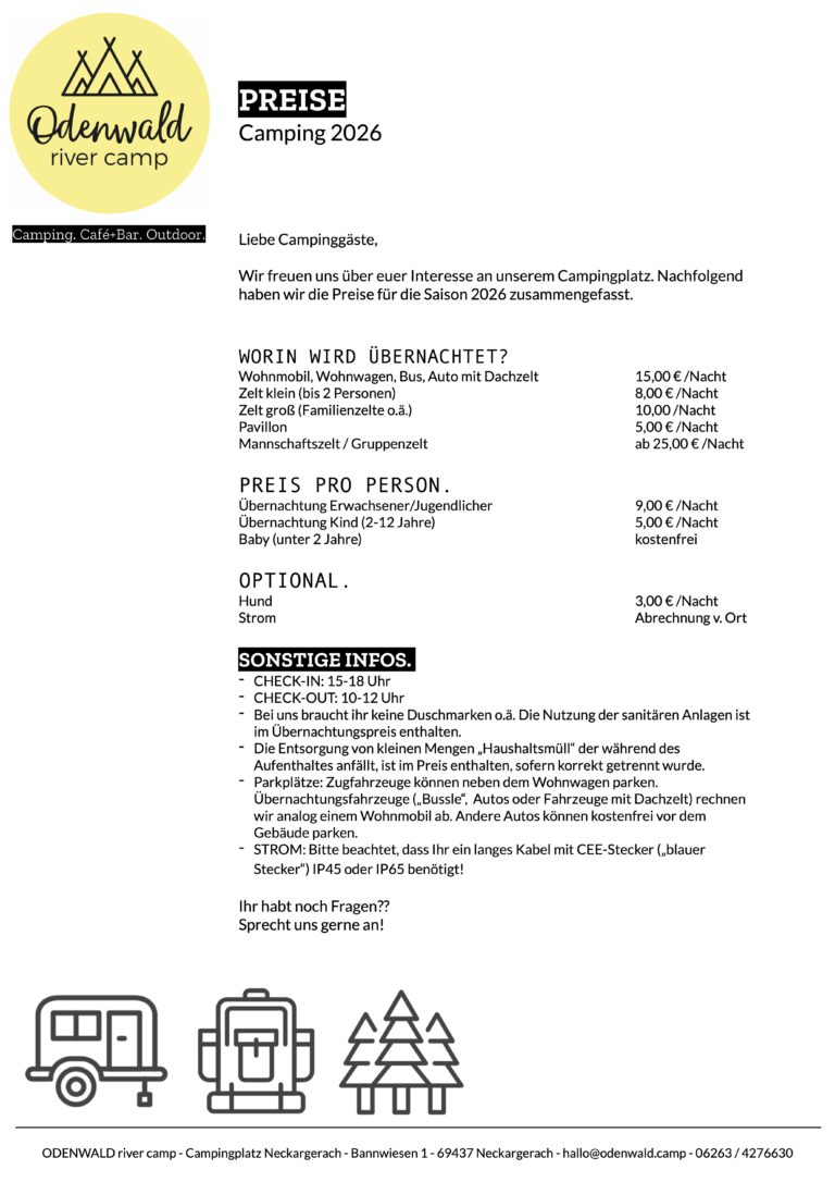 Egal ob routinierter Profi-Camper oder Camping-Neuling, übernachtet im eigenen Zelt, Wohnwagen oder Wohnmobil. Unser Platz ist nicht parzelliert und bietet genug Platz für alle!